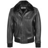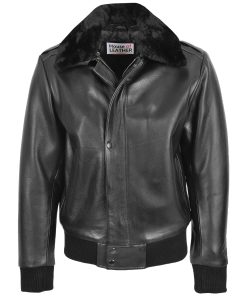 Men’s Black Leather Bomber Pilot Jacket Removable Collar
