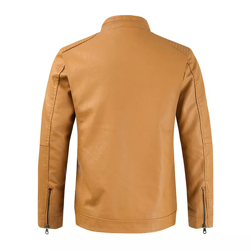 Men’s Pu Leather Zipper Slim Jacket Biker Stand Collar Motorcycle Coats Outwear